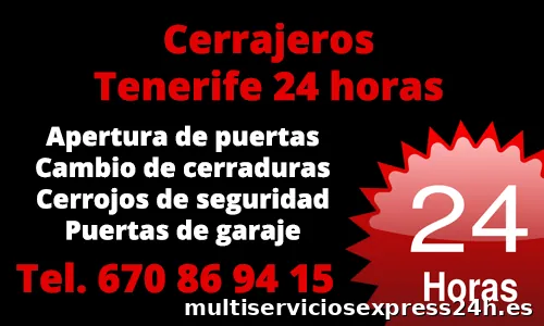 Cerrajeros Tenerife 24 h ofrece servicios a domicilio las 24 horas. Contamos con 22 años de experiencia en el sector donde todo nuestro personal cuenta con alta cualificación donde el servicio a nuest...
